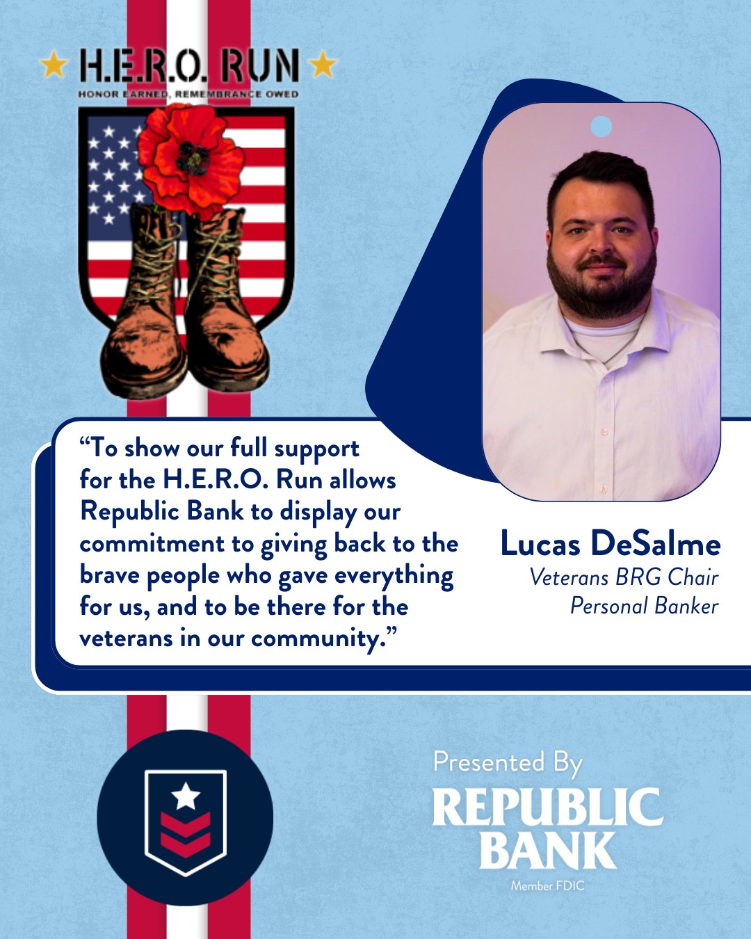 Republic Bank, on behalf of our Vets BRG, was a presenting sponsor for the H.E.R.O. Run in Louisville. This event honors military lost in battle or at home and proceeds benefit Volunteers of America Mid-States and UofL’s Salute to Service Scholarship Fund.